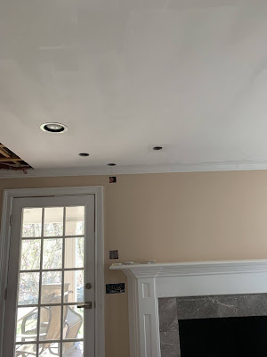 Monday and Tuesday the electricians were here full day. On Wednesday the rough electric was inspected and passed. Also on Wednesady, the start of some spray insulation was done around a few openings to the outside that needed to be done for the exterior inspection. Thursday the inspection for the exterior was completed. Then Thursday afternoon the interior spray insulation in the walls was done. Quite a stinky process that is - literally! It didn't come into the upstairs, thankfully, since the construction zone is still walled in.